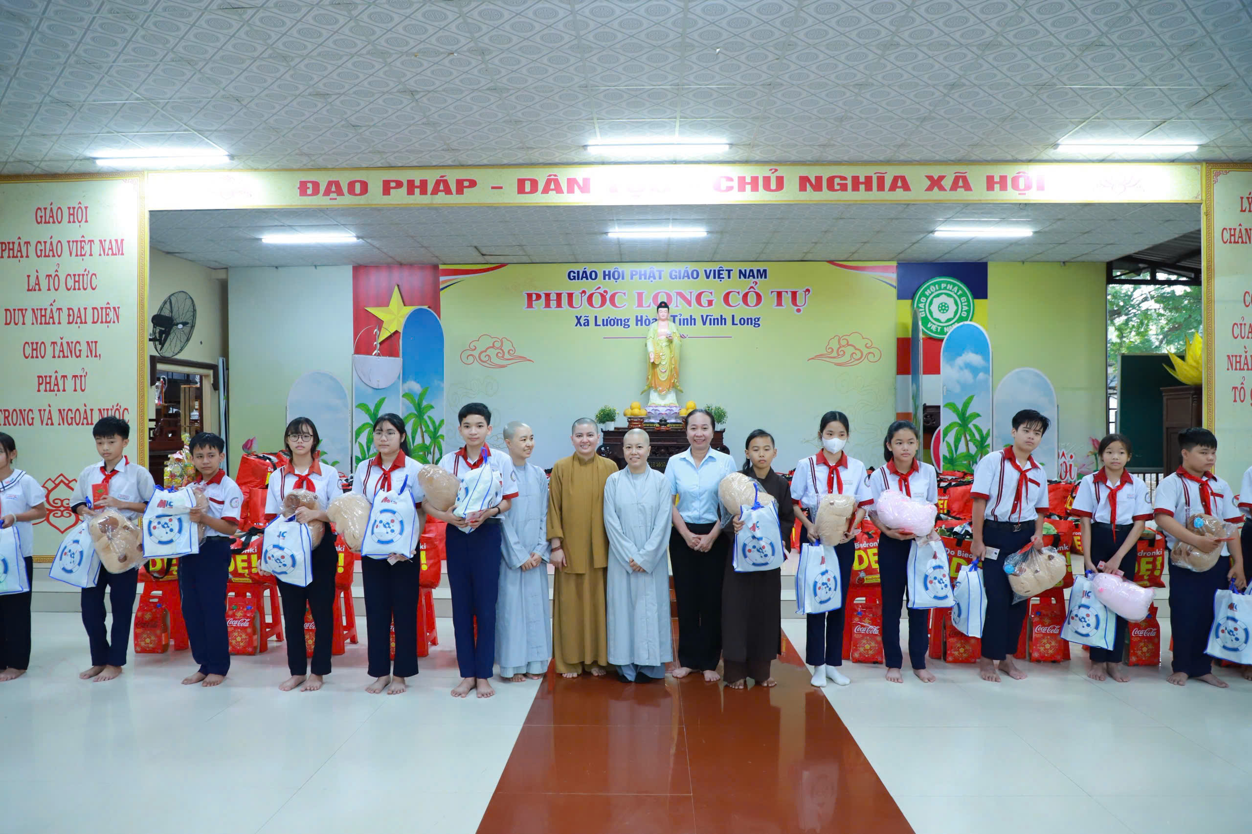 Tham dự chương trình có bà Nguyễn Thị Ngọc Phượng – Phó Chủ tịch UBND xã Lương Hòa; đại diện các ban, ngành, đoàn thể xã; cùng đơn vị tài trợ là Sư cô Thích Nữ Huệ Phúc và quý Phật tử Chùa Quan Âm Tu Viện.